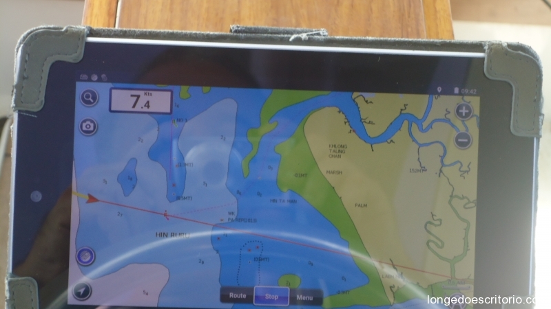 O meu backup: um tablet android a executar o Navionics. A carta de papel e o velhinho bloco de apontamentos também estão por perto.